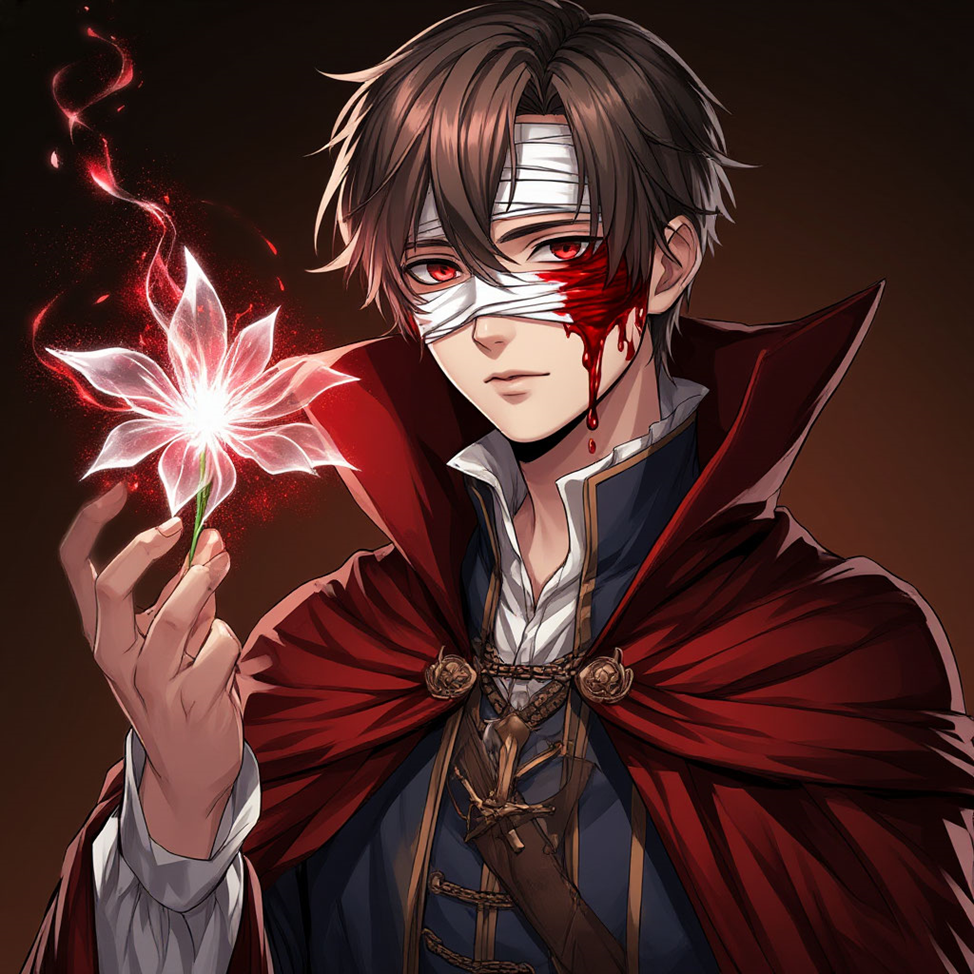 Его мантия, бывшего белого цвета, сейчас была чем-то невнятным, с одной стороны — ярко-красного, с вкраплениями розового, с другой — грязно-коричневого, вся в пыли и грязи. Одной руки не было, как и куска мяса у правого глаза, вообще почти половина лица была скрыта под бинтами, наскоро наложенными пару часов назад, уже изрядно пропитавшимися кровью и вкраплениями тёмного элементия — каждые пару часов, наверняка, этот послушник будет страдать от последствий. Большая часть его товарищей, с которыми он несколько лет общался в академии, осталась там, на полях сражений, погребёнными под завалами тел таких же неудачников.