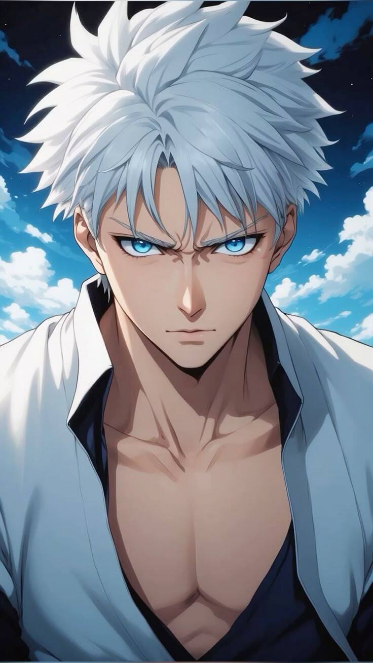 (Примерный вид главного героя, отличительные черты, короткие серебрянные волосы и голубые глаза.)