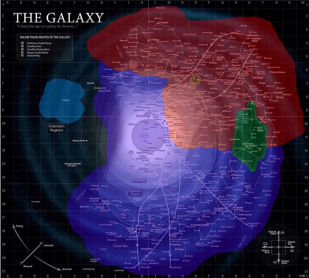 (Примерная карта. Зелёное-Пространство хаттов, красное-Империя, синее-Республика. Если будете сверять с картой на вукипедии, то Пространство хаттов, будет сверху, Империя слева)