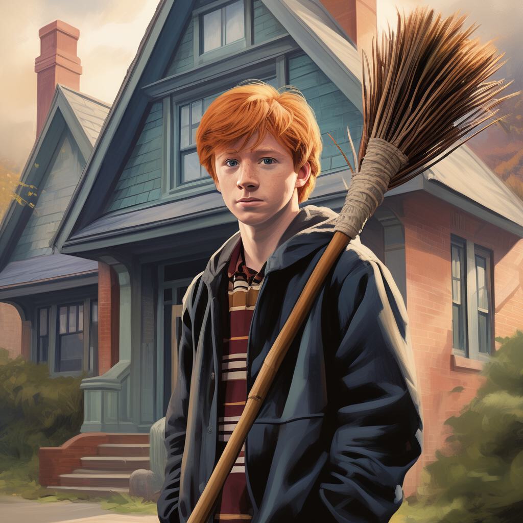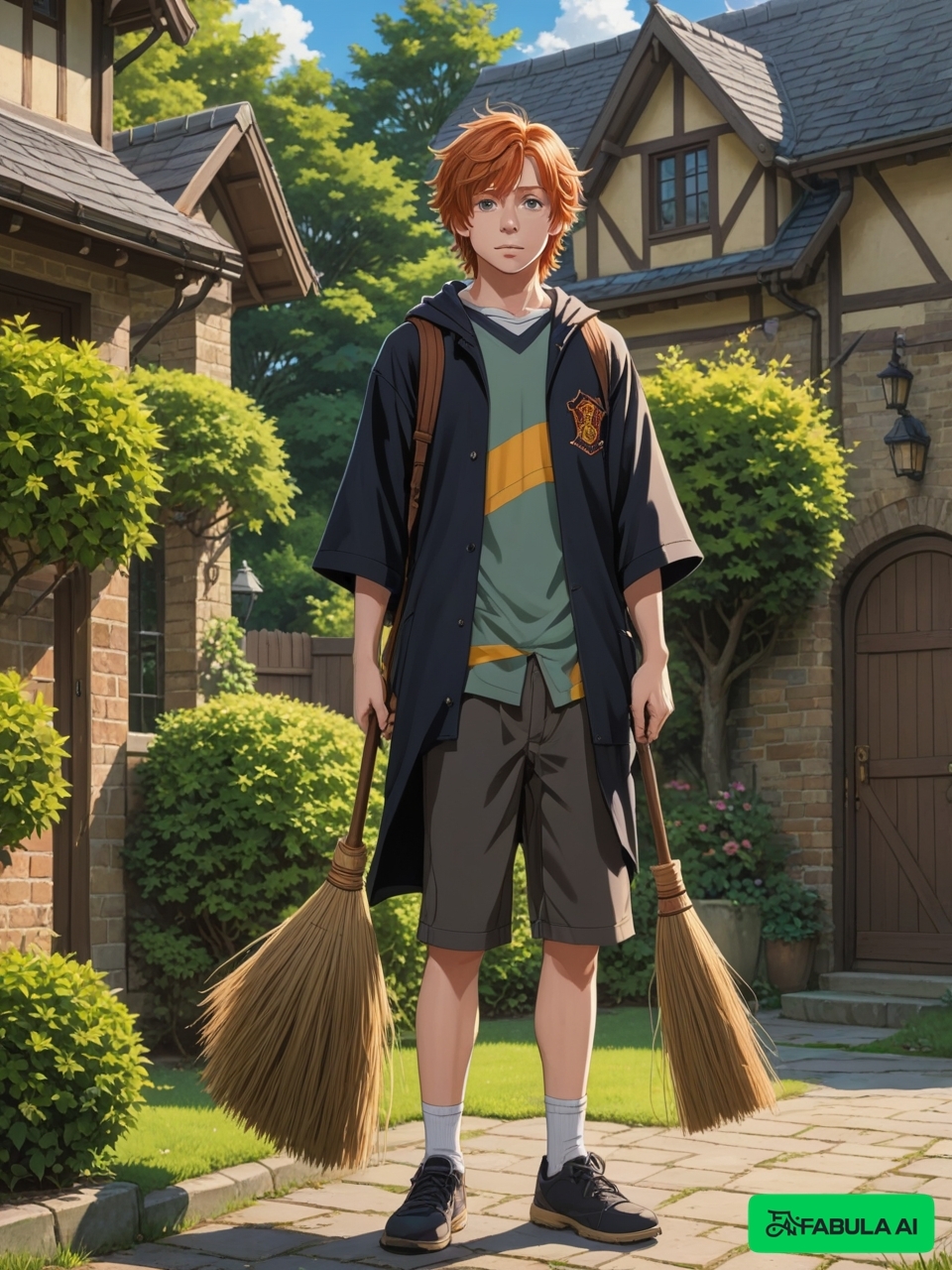 Рон смущаясь опустил руку в ящик и достал из него новенькую метлу, я в них не особо разбираюсь, но смотрелась она красиво. Немного изогнутое отполированное коричневое древко, ровные аккуратные прутья были стянуты блестящими стальными хомутами, а ещё этот летательный аппарат имел упоры для ног из чёрного матового металла. Судя по лицу Рон в шоке и не верит в происходящее.