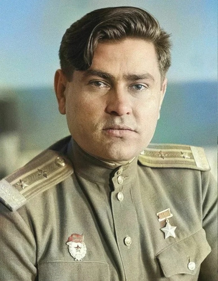 Первым оказался высокий черноволосый мужчина с ярко-голубыми глазами в форме маршала Советского союза, а рядом с ним мирно беседовал полковник советских ВВС. Когда первый ступор спал, то я сразу узнала своего деда, а вот его собеседником был невысокий коренастый мужчина, его тёмные волосы были сильно побиты сединой, однако карие глаза лучились жизнью и весельем. Полковника я не узнала, но его лицо показалось мне очень знакомым, словно я где-то видела его раньше.