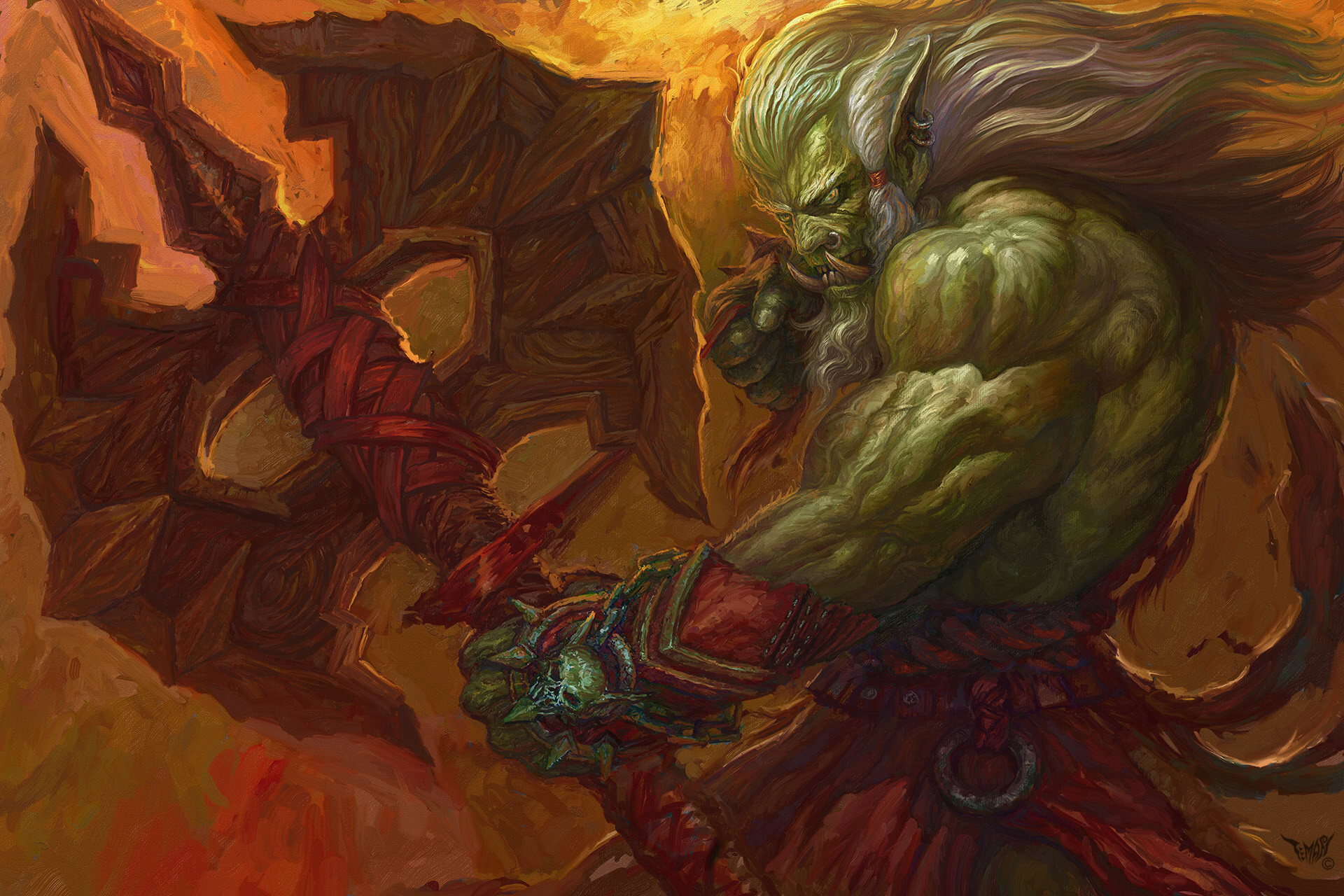 Перестав оглядываться в поисках магов, я вернула свое внимание к существу, что оказалось в клетке. Его было сложно спутать с ночным эльфом, как минимум потому, что кожа его была зеленой. Зверь внутри клетки не был изящным, как любой эльф. Он явно был существом грубой силы, отчего и превосходил в ширине плеч любого из присутствующих эльфов. Морда этого существа была под стать его фигуре: широкая, с круглой и массивной челюстью, с торчащими из-под нижней губы парой крупных клыков.