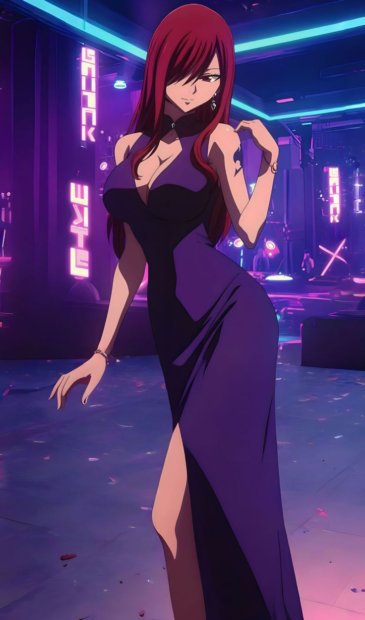 Отойдя на пару шагов, она применила свою магию вооружения, засветившись серебрянным светом, а после представ в коктейльном платье фиолетового цвета.