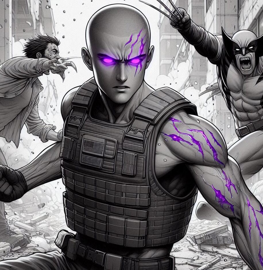 В этот хаос влетел ещё один участник: высокий парень в порванном бронежилете и штанах, босой, измазанный в саже и копоти. Он чудом пригнулся под ударом Юрико, проскользнул под когтями Логана и оттолкнул Дедпула ногой — непреднамеренно, в процессе выживания, — просто чтобы освободить проход, куда и устремился, не обращая внимания на дерущихся мутантов.