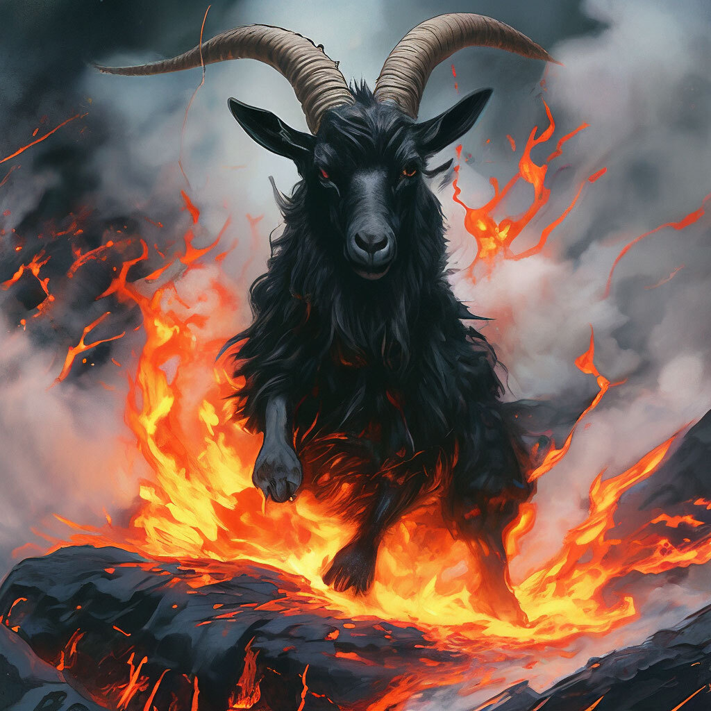 Это был чёрный козёл, объятый пламенем преисподней. Он орал как чудище и носился, бодаясь башкой с рогами. Пока какая-то тётка не окатила козла водой из ведра.