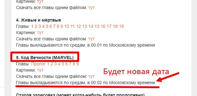 По главам никто ничего не потеряет, как выходила глава каждой работы раз в неделю, так и будет выходить. Со следующей недели начну ставить "Мега Цель" на "Марвел", а там и на "Мертвецов". Может даже без перерыва. Ну… какое-то время уж точно.