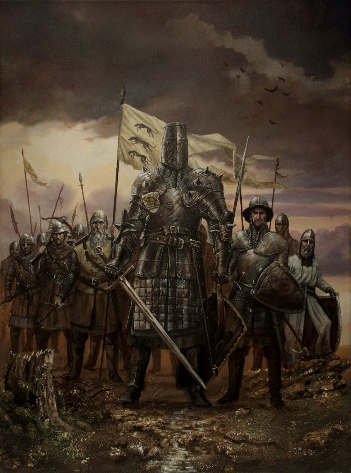 — Роберт Баратеон! — выкрикнул богато одетый рыцарь, вставший на его пути, вместе с парой десятков бойцов, — узнал меня? Я, Лин Корбрей! — Он указал кончиком меча на грудь Штормового Лорда, — тот, кто одолеет тебя!