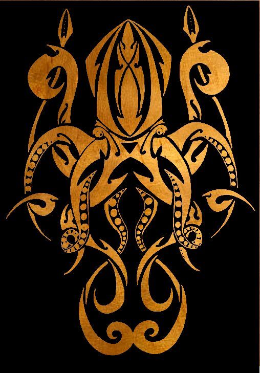 Не успели люди высказать свои предложения, как на столе тут же раскинулось полотно с черным фоном и золотым кракеном в центре. Увидев моё предложение, пираты подняли на меня скептические взгляды: