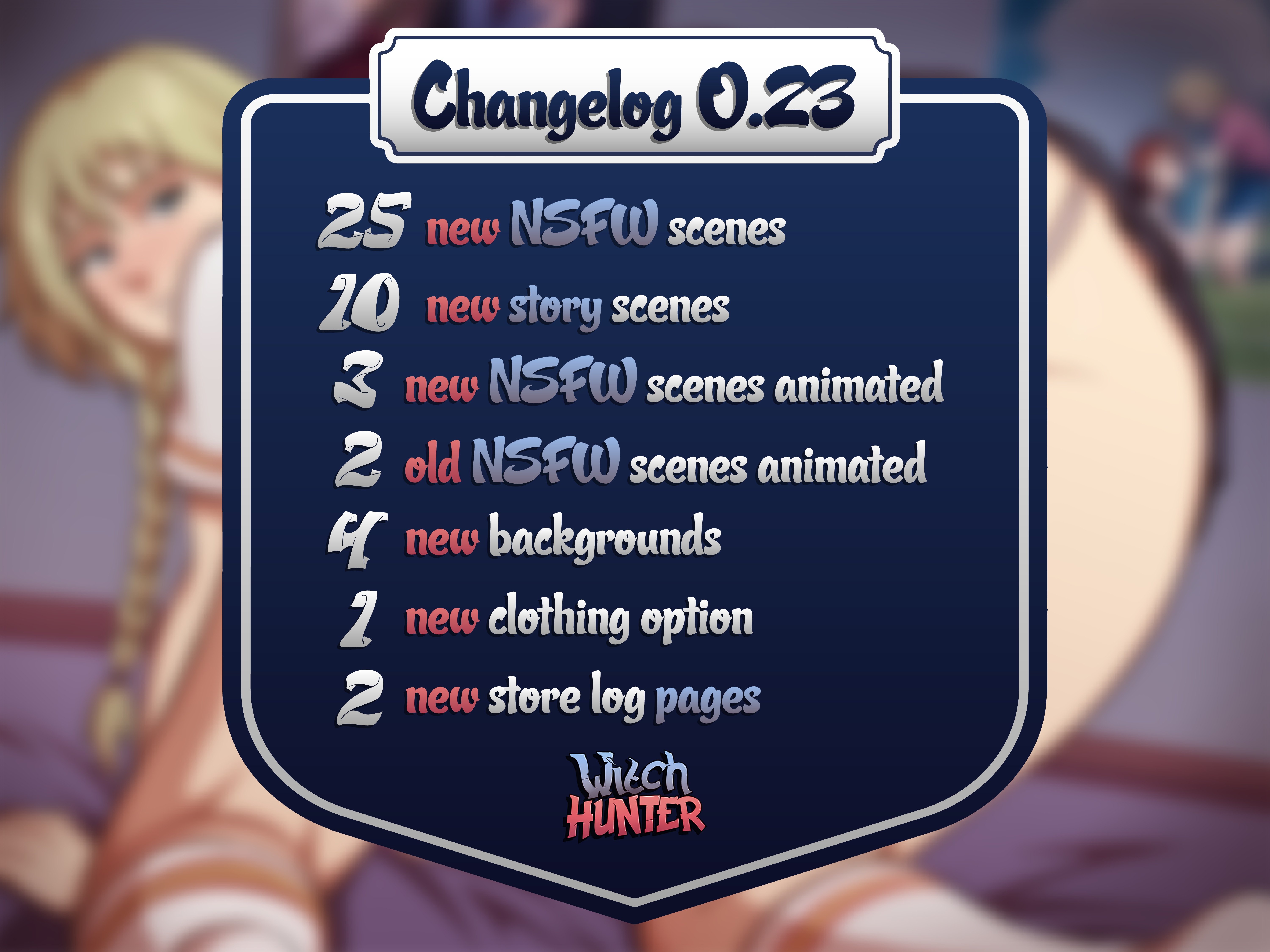 But there is also good news in this. The main reason why it took so long to develop this time (even though we started it in advance) is that this is the biggest update we've ever had. On average, there are about 25 scenes in the update, and in a large one, like update 0.22, there are about 30 scenes. In version 0.23, we have a total of 35 scenes, 25 of which are of a frank nature. And at the same time, we cut out the planned gameplay elements and reduced the volume of the script by 20% (but even so, this is the longest script we've ever had). All in all, this is a pretty important update for the entire Witch Hunter story, so we approached it responsibly. This has led to the fact that we are not in time right for Halloween day.