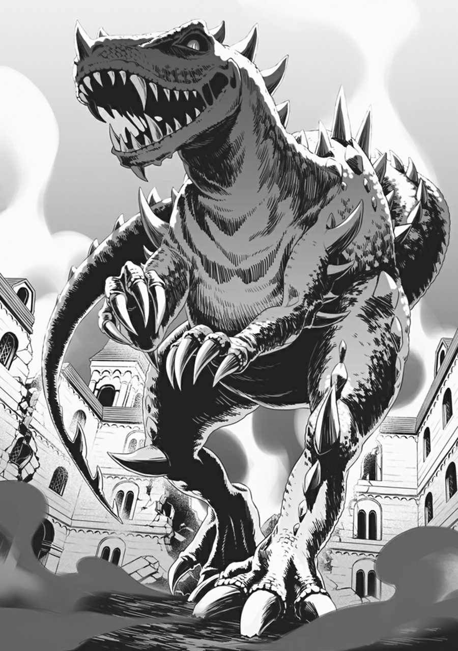 И из этого же разлома, словно напоказ, медленно выплывала фигура чего-то огромного и явно опасного. Сначала задние когтистые лапы, похожие на таковые у рептилии. Затем и огромное тело, покрытое толстой тёмно-зелёной шкурой. Ну и в завершение всего показалась морда, принадлежащая…