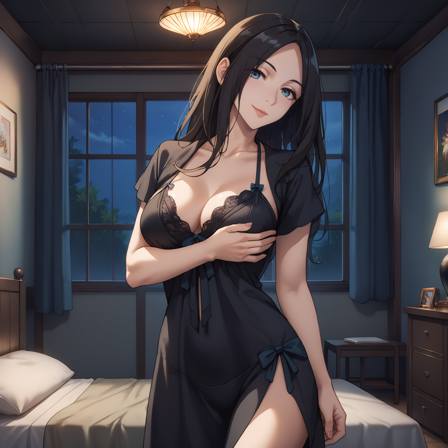 Дверь тихонько скрипнула, впуская за собой аккуратно, даже с некоторым изяществом ступившую за дверной порог ножку. На самой Садине же в этот раз было не привычное недоразумение, явно по какой-то ошибке названное одеждой, а довольно притягательного вида чёрная сорочка…