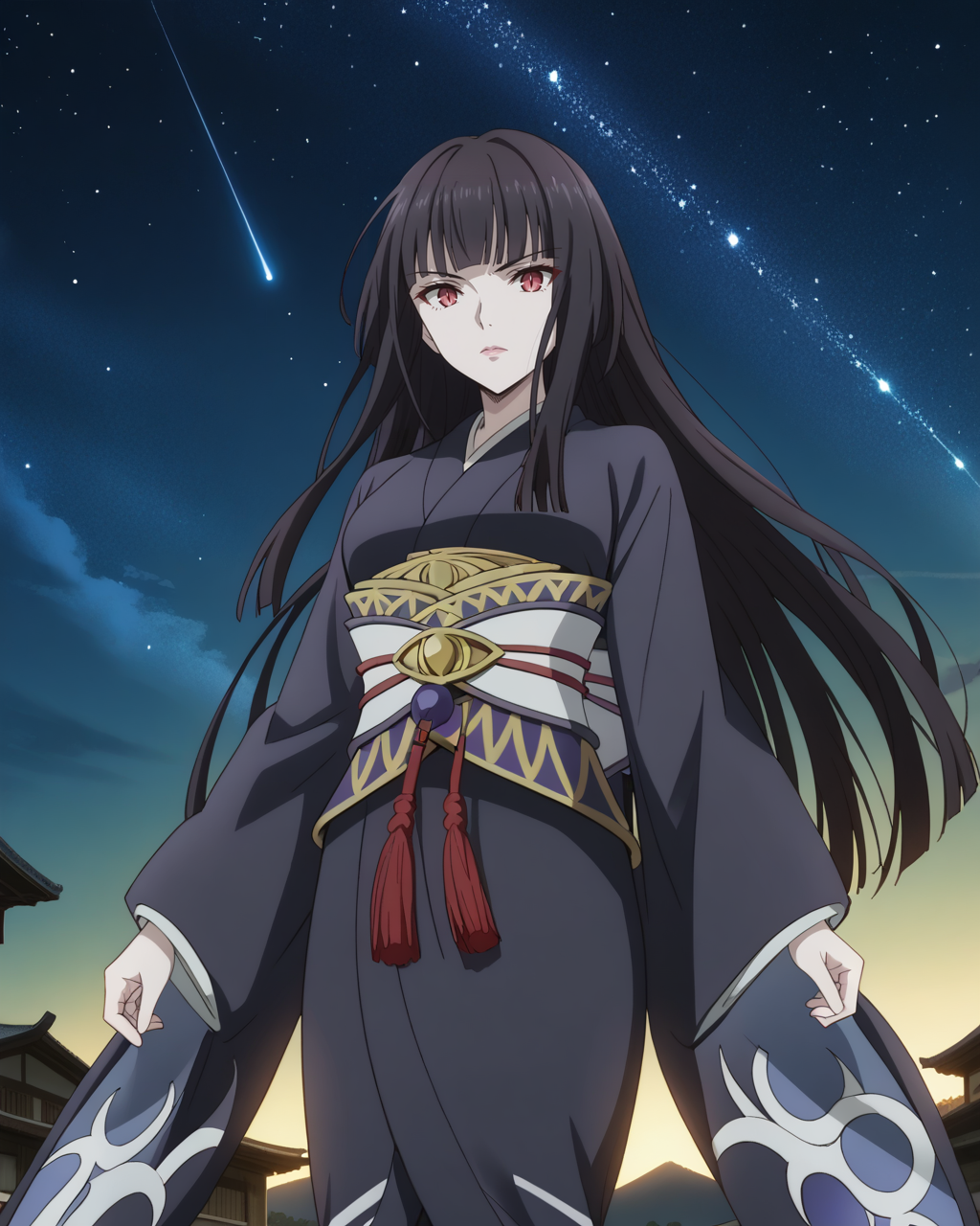 Там стояла девушка в чёрном кимоно.