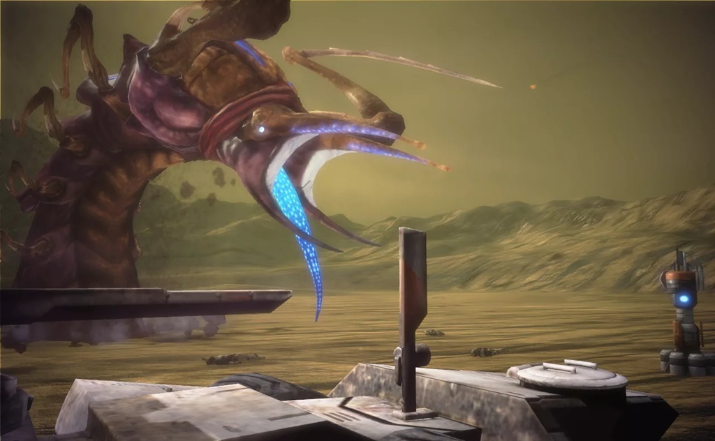Она устроила биотический выброс, который разошёлся по помещению, но барьер Лиары с честью выдержал, хоть и покрылся трещинами, а вот барьеры Лисси и Мисси не выдержали, но ослабили выброс. И если бы не это, то, скорее всего, капсула, в которой находился очередной жук, не выдержала бы. А так она только трещинами пошла.