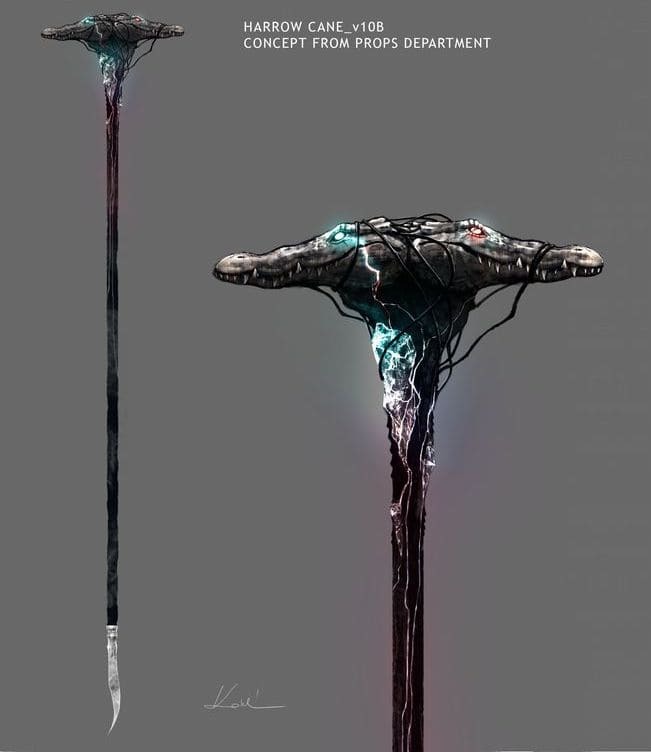 — Сам Хекматьяр мне ничего не сделал, однако меня очень интересует артефакт, которым он владеет. — Легкое движение пальцев и теперь трость появилась отдельно дав, рассмотреть ее повнимательней. Тонкая, отлитая из странного черного металла, она выглядела достаточно отталкивающе и чужеродно, особенно из-за набалдашника, сделанного в виде голов двух крокодилов, смотрящих в противоположные стороны. Соединенные странной черной проволокой, опутывающей все навершие и часть основания трости, они злобно скалились, сверкая разноцветными глазами: правая красными, а левая синими.