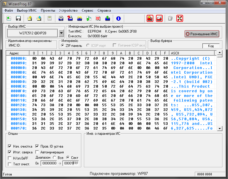 Забавно, что в закупленных давеча в Китае как-бы-новых (но все всё понимают) W27C512 было не пусто. Там было всякое, самое интересное из увиденного: