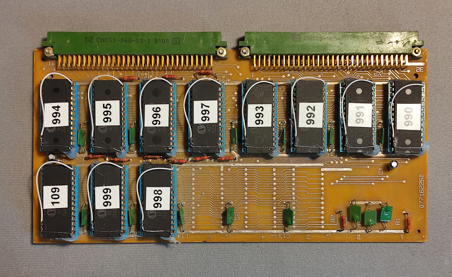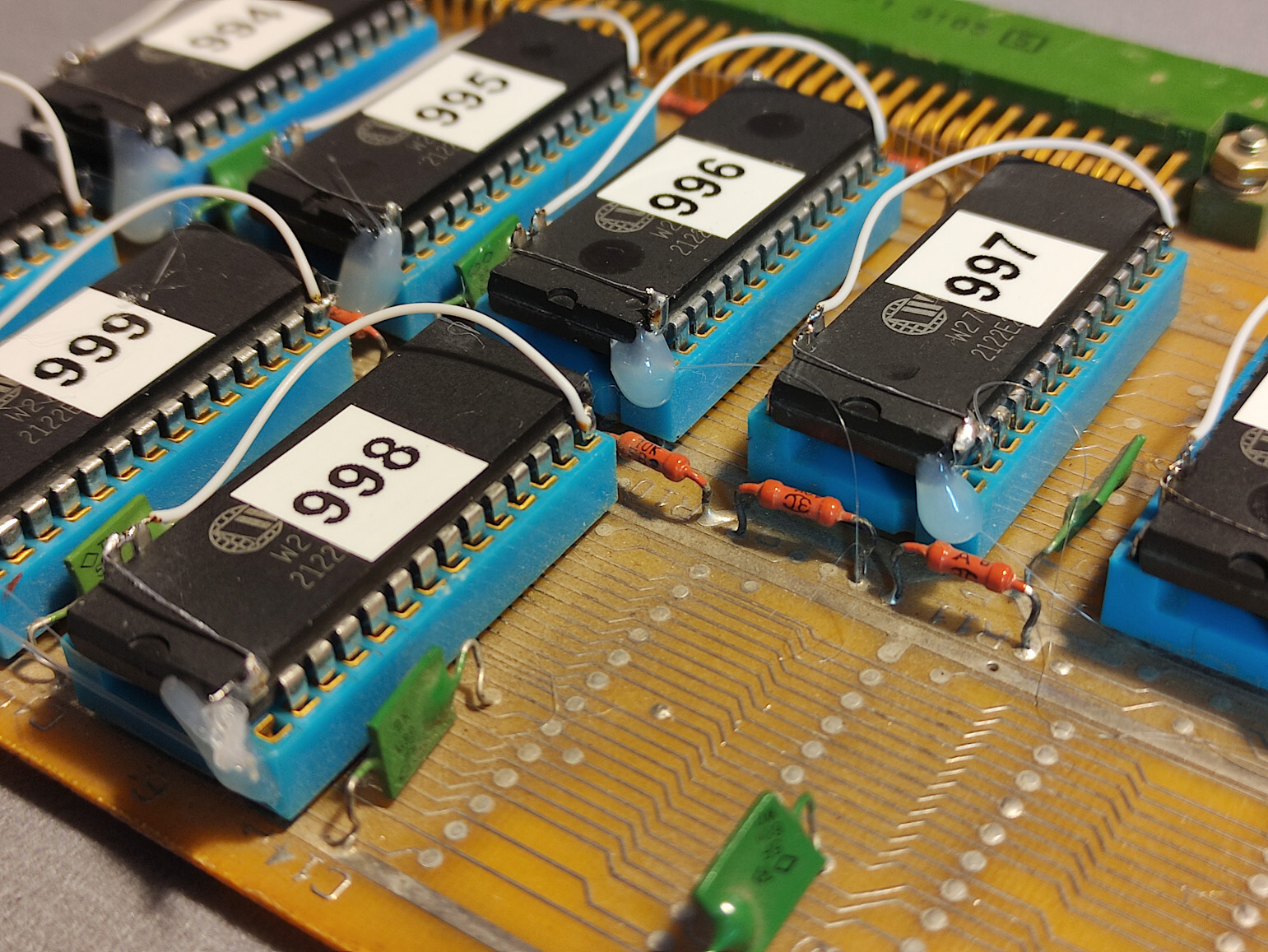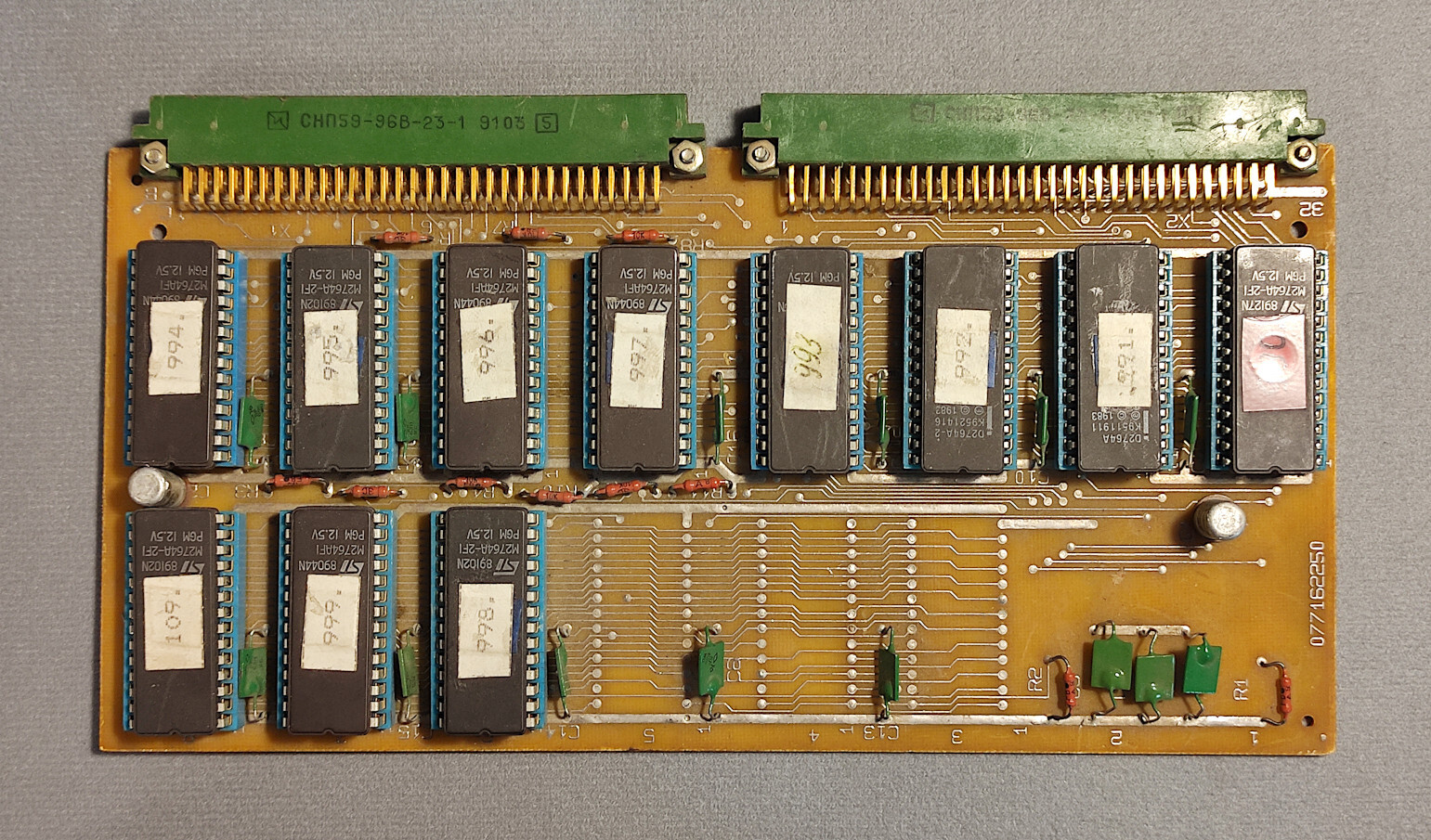 Потом оно было прислано ко мне. Я снял дампы со всех ПЗУ и обнаружил, что приличное их количество начало деградировать. В некоторых уже стёрлись отдельные биты, а в некоторых каждое чтение возвращался разный результат, то есть образовались «плавающие биты». Главная проблема была в том, что это произошло с ПЗУ, содержащим код, и конечно, система не запускалась.