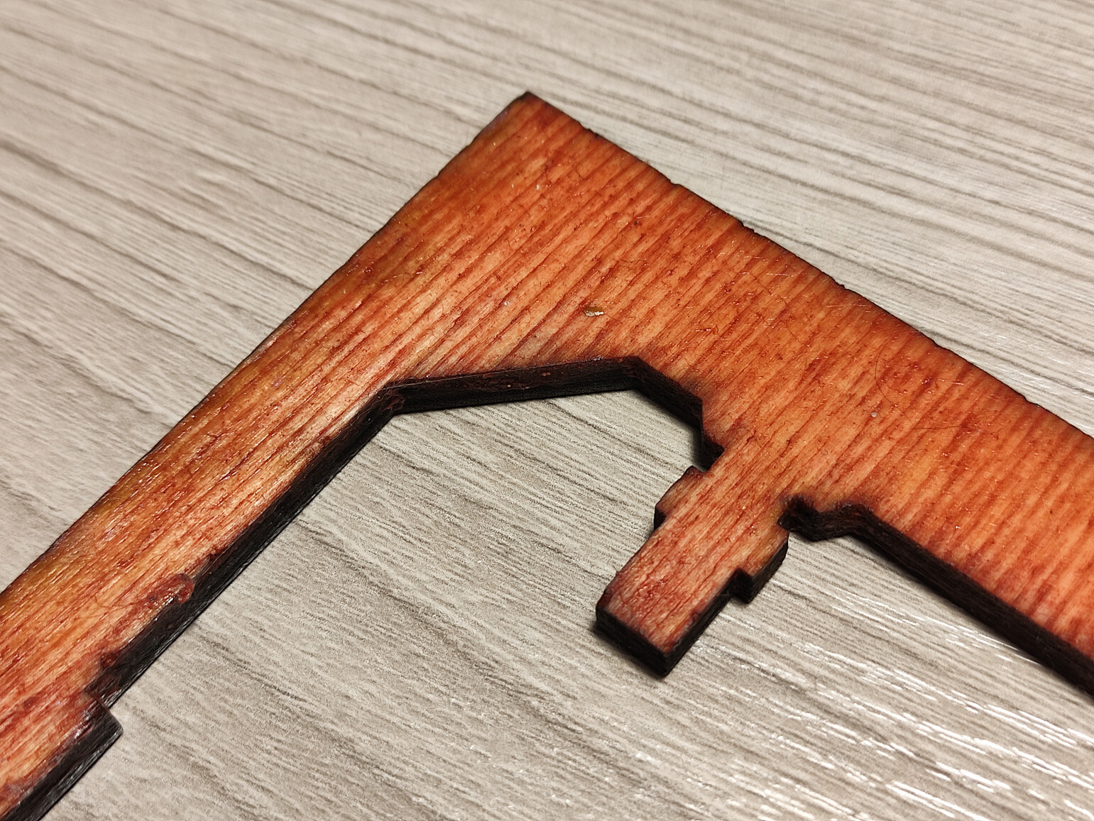 Потом отгравировал логотипчик. К сожалению, фокусировка вышла не очень точной — этот процесс определённо требует наладки. мелкие детали размылись, но в целом смотрится более-менее.