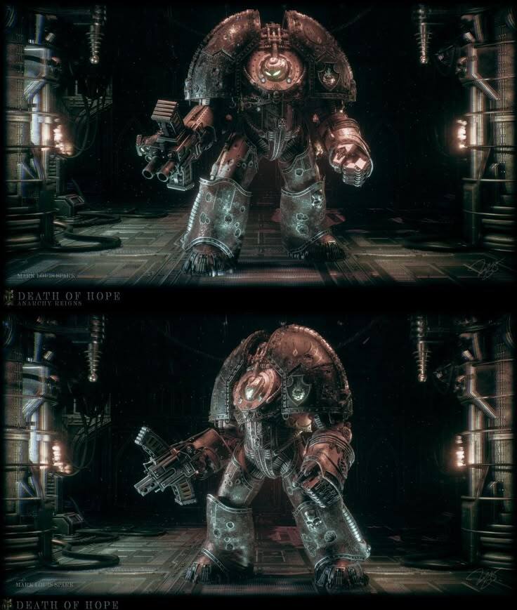 Нам удалось захватить несколько десятков образцов этого оружия. Часть ушло к нашим "шестеренкам", часть забрали для изучения в корабельные мастерские. Два десятка были отправлены на Кемос в опечатенных ящиках вместе с конвоем из астартес. Остальное же забрали мои сыновья в качестве трофеев, и теперь у нас есть пара отделений с подобным вооружением. Механикумы конечно побурчали, но "отбирать" не решились. Однако меня интересовало более массовое использование подобного оружия и те кто будет им пользоваться. В легионах сейчас полным ходом идем замена терминаторских доспехов. "Сатурнион" заменяется на "Катафракт", в моем легионе таких доспехов не то чтобы нет… Их откровенно говоря очень мало. Едва ли наберется десятка два комплектов. Причины такого думаю понятны… Перед сверхтехнокланом Терра была сформирована сложная, но вполне себе понятная задача: модернизировать или создать на базе терминаторских доспехов "Сатурнион" новые, а так же создать модификации плазменного, радиоционного, волкитного и гравитационного оружия для последующей их установки на новые доспехи. Я планировал создать новые подразделения астартес с подобным снаряжением. Туда будут набираться ветераны из отрядов с тяжелым вооружением. Их задача проста: за счет возможности к телепортации они должны будут "прыгать" по поле боя и создавать такой вал "огня" что любое наступление противника на этом участке фронта станет попросту невозможным. Да и в принципе у таких отрядов есть много вариантов как их применять.
