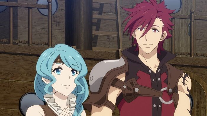 Наофуми вместе с Рафталией стояли на мостике перед колоритной парочкой из красноволосого парня, неловко почёсывающего затылок и с осуждением смотрящей на него голубовласой девушкой.
