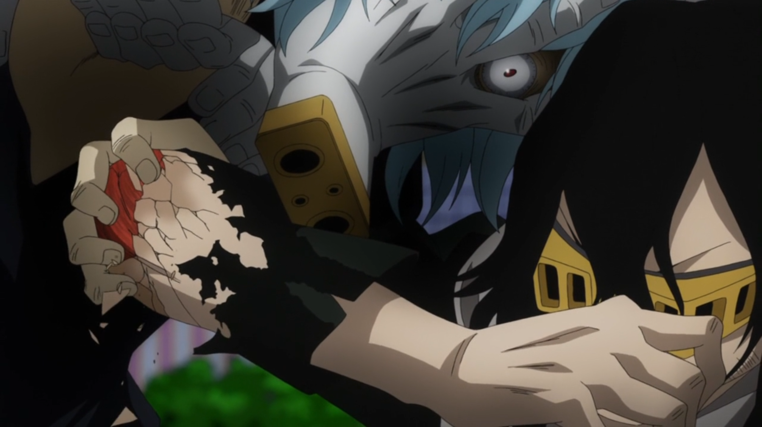 Однако последующие действия шокировали меня. К Сотриголове побежал тот самый человек с рукой на лице. И ладно бы только это, ведь причуда учителя позволяет стирать причуды других, но ему всё равно как-то удалось использовать свой квирк. Именно это поразило меня. Одно лишь касание начало буквально крошить локоть мужчины.