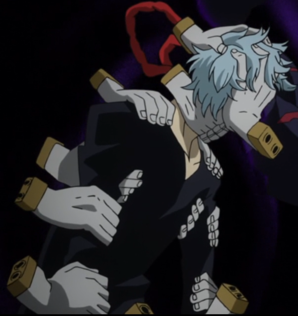 Не знаю, как остальные, но я в этот момент максимально напрягся и готов был атаковать в любую секунду. Квирк данного злодея по моим представлениям очень опасен. Если всё так, как я думаю, то… Победить его без учителя Аизавы, которого окружили другие злодеи, практически невозможно.