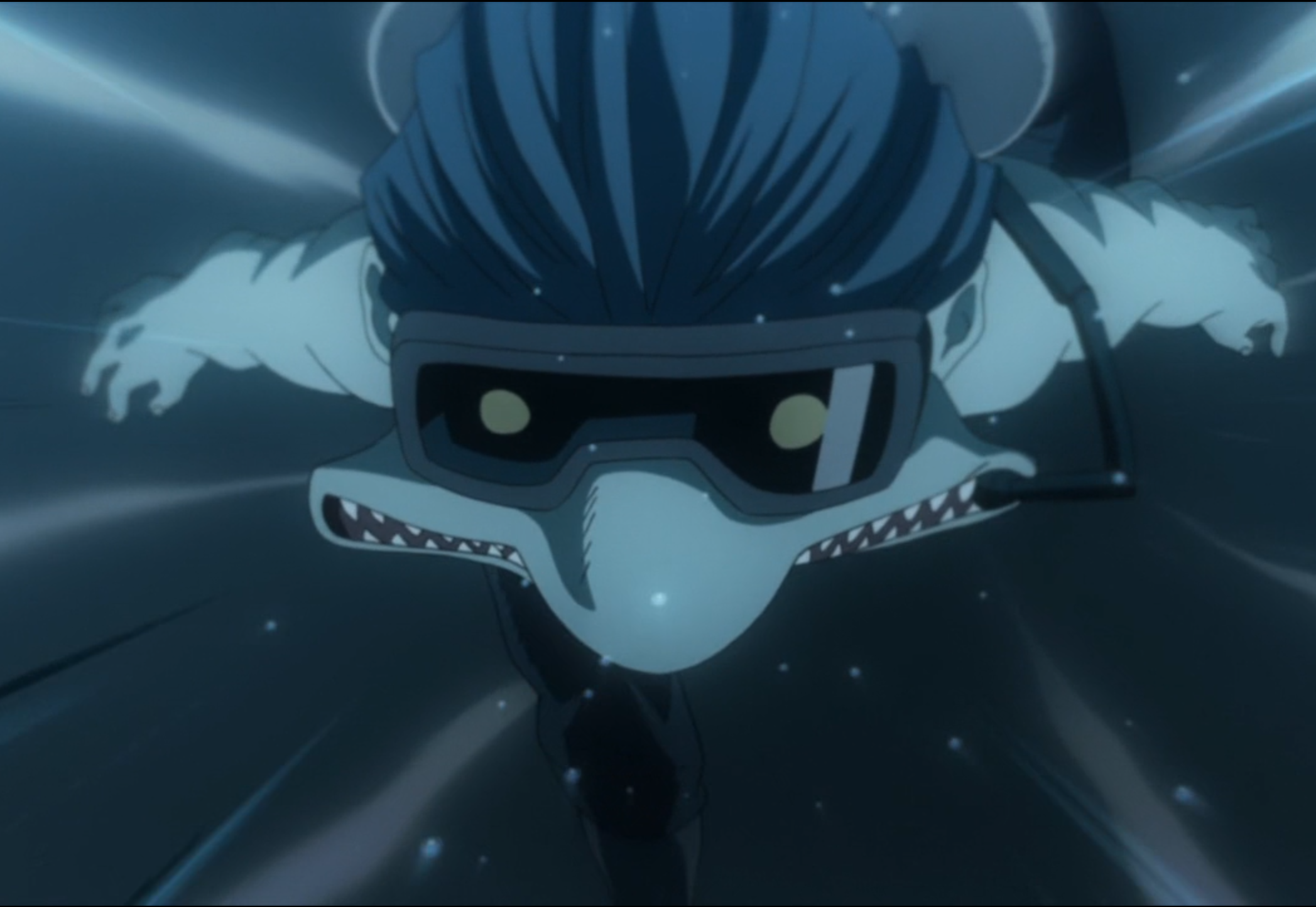 — Мы обеспечим отсутствие погони! — вторил ему Ханта Серо — худощавый подросток среднего роста с тёмными волосами до плеч. У него же геройский костюм чем-то напоминает таковой у байкера. Его дополняют мотоциклетный шлем и наплечники в виде диспенсеров для скотча.