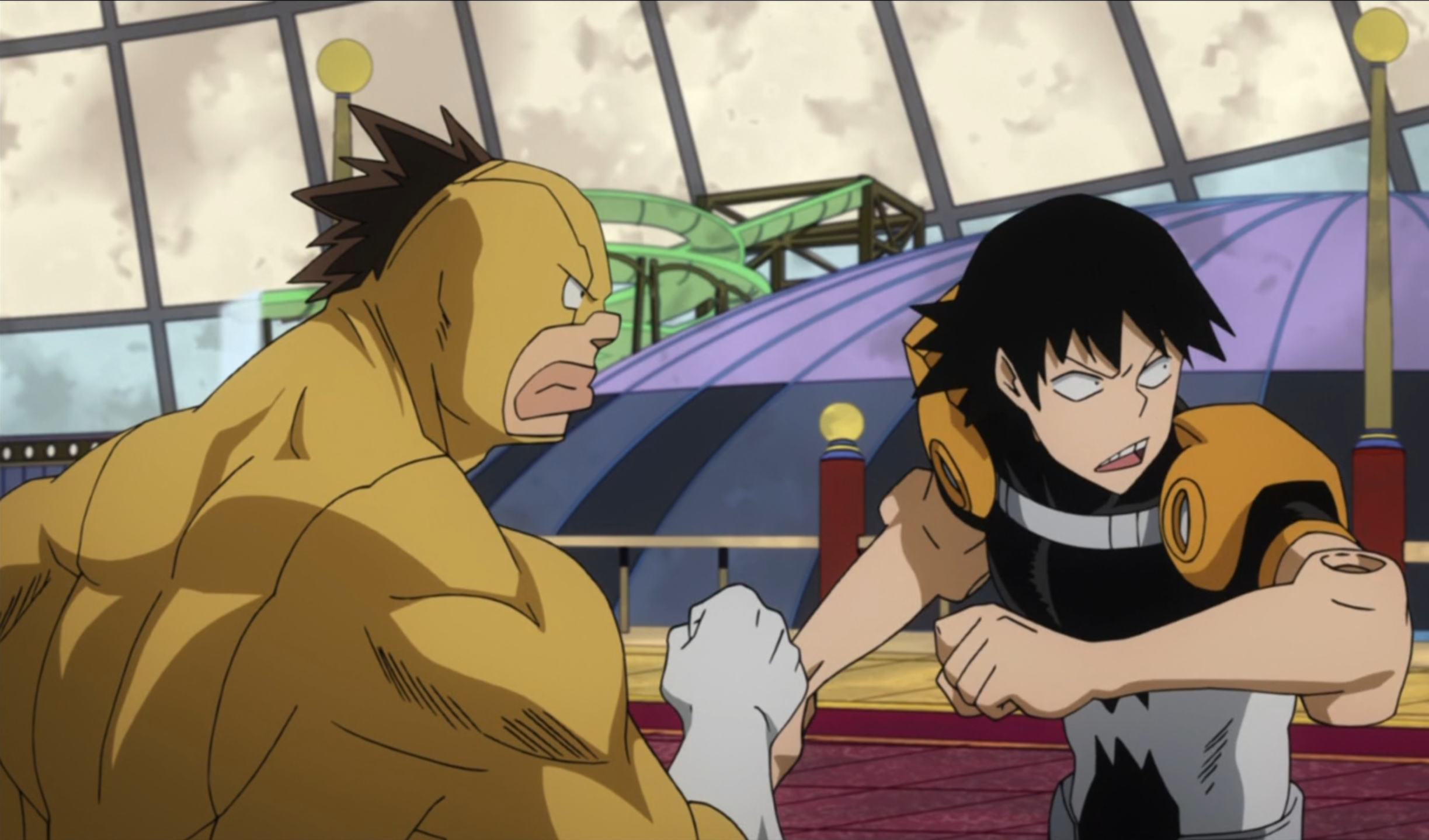 — Беги уже! — подтолкнул того Рикидо Сато — крупный мускулистый парень с полными губами и тёмными волосами, стоящими торчком. Его геройский костюм состоит из жёлтого комбинезона с капюшоном с прорезями для рта, глаз и волос, белых перчаток, сапог и пояса. — Попытайся выбраться отсюда, ведь не для этого они тут нас заточили.
