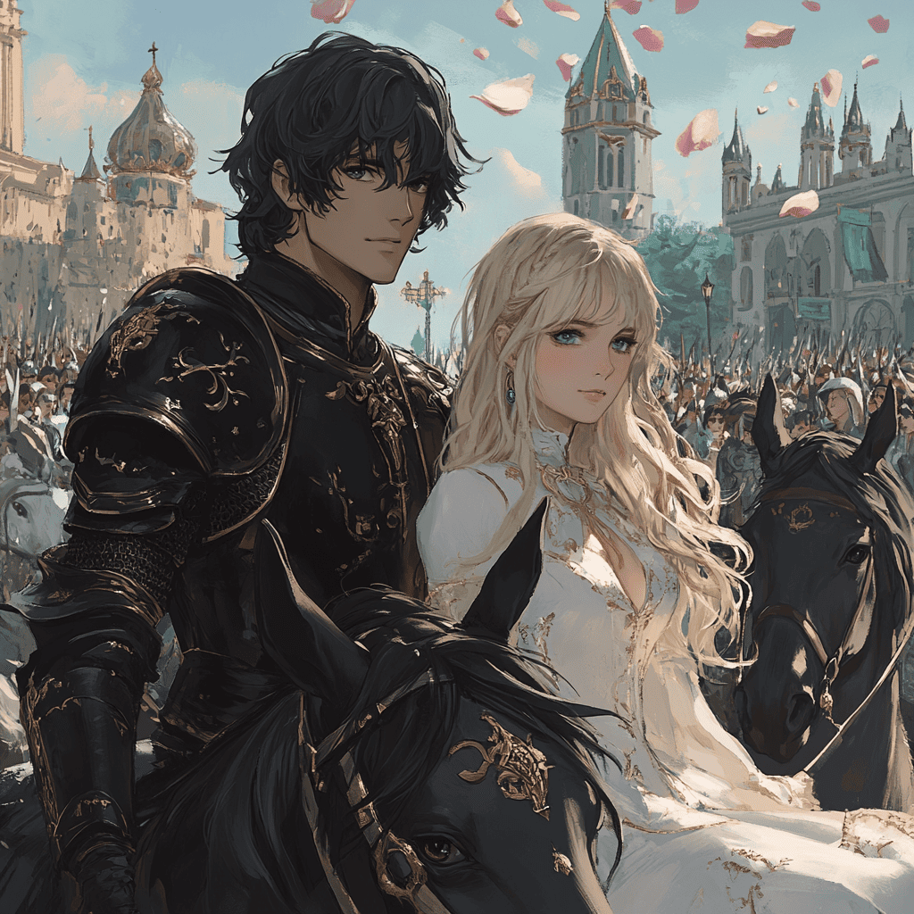 Сразу после завершения церемонии, огромная процессия из благородных оседлала заранее подготовленных коней и направилась в сторону замка, под громкие, можно сказать громогласные, овации народа.
