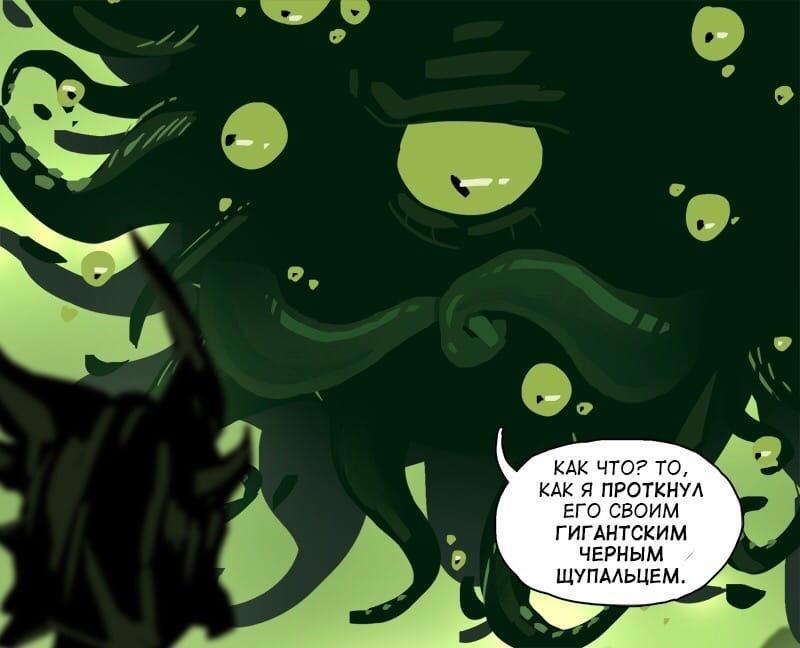 И именно этот момент выбрала она хтоническая тварь, чтобы проявиться и поболтать с нами. О да, разумеется это был один тентаклиевый монстр, спокойно появившийся в почти слившейся с его Апокрифом реальности.