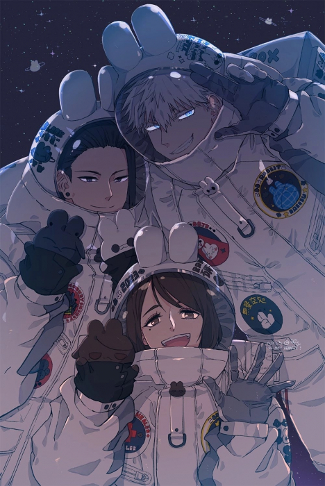 "Уф…" пробормотал Мэгуми, в то время как Итадори казался довольно равнодушным к присутствию девушки.