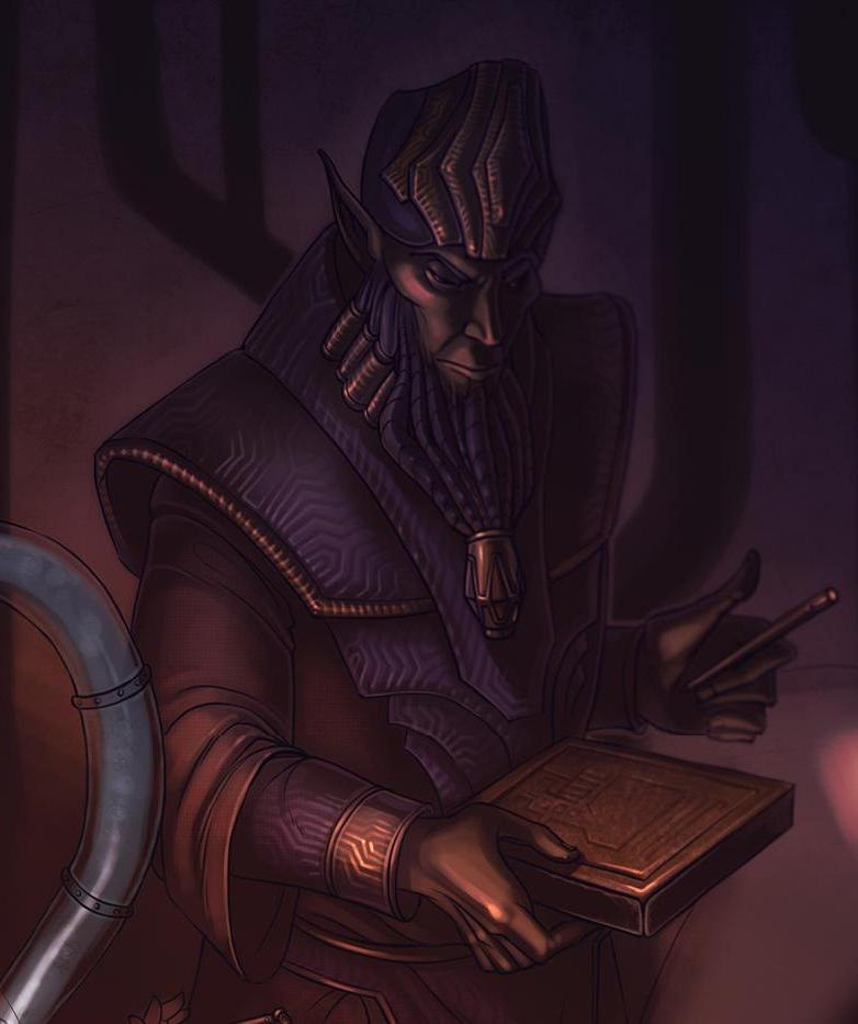 Всё это знала она по одной причине — её хозяин был престарелым даже по меркам своей жестокой расы, но в отличии от них, он веровал не в жестоких даэдра, а по его словам — в милосердных, но отвернувшихся от его расы за её извращения, аэдра.
