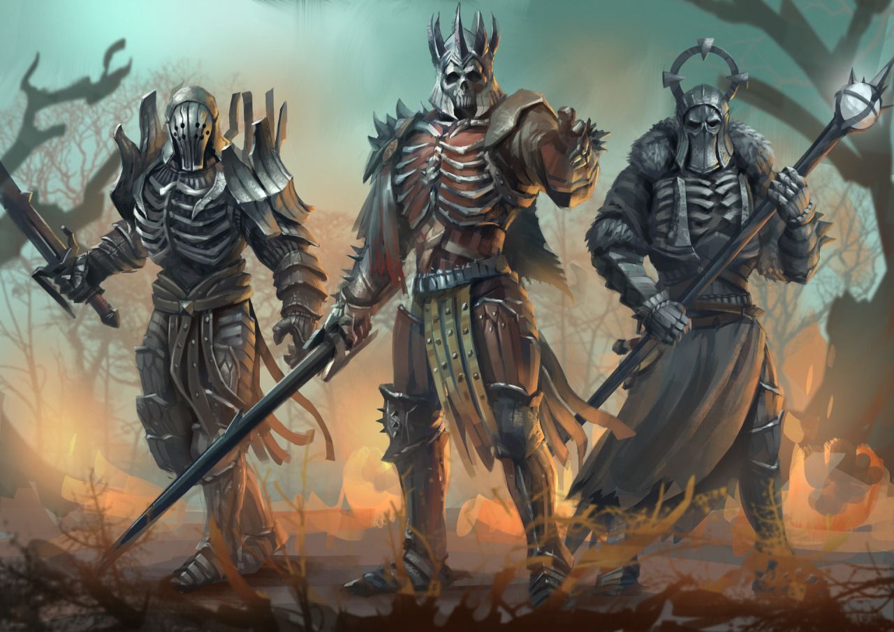 Восседая на тяжёлых, высоких конях, покрытых латами и рваными заиндевевшими попонами, могучие воины были облачены в массивные доспехи, откованные неведомыми мастерами так, чтобы внушать страх и ужас в сердца простых смертных, невольно навевая панические мысли об оживших скелетах, чьи пустые глазницы обнажённых черепов смотрят прямо в душу. В клубах колючей ледяной пурги, покрытые инеем, их кони один за одним ступали на мягкую, сочную летнюю траву, что мигом осыпалась под тяжёлыми копытами колким льдом. Но вот сфера за спинами с шипением схлопнулась, не оставив и следа, а на маленькой замороженной полянке посреди рощи осталась дюжина всадников.