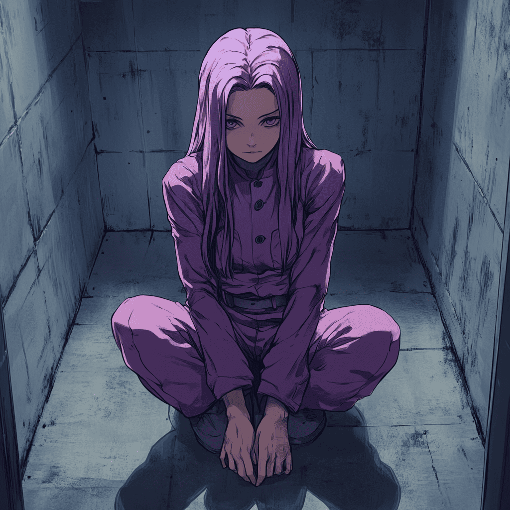 — У меня для тебя есть заказ… — Сказал я, заранее сменив облик на человеческий и остановившись напротив изолированной камеры, где сидела молоденькая девочка, с розовыми волосами и зрачками, одетая в такого же цвета тюремную робу. — Гамбит.