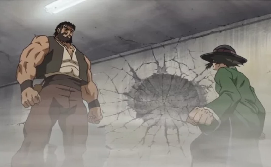 Разломав своим телом бетонную стену и впечатав девушку в другую часть коридора, появился он, ростом он сравним с мастером Сакаки, огромный, мускулистый и от него исходят волны агрессивной Ки.