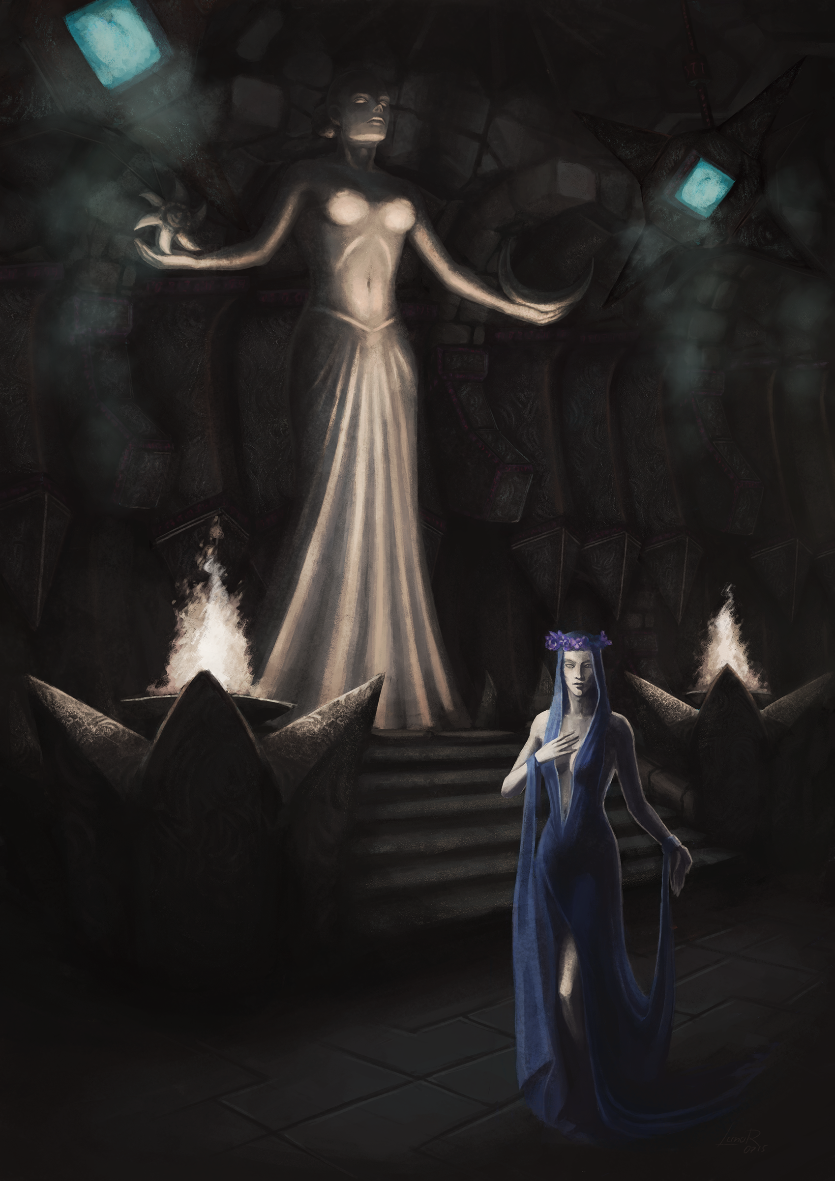 Чтобы разрешить этот спор, он отправился по наиболее лёгкому пути — отправился в паломничество в Холамайян, священный храм самой Азуры, и призвал её с помощью ароматических свечей, священной робы и святых слов.