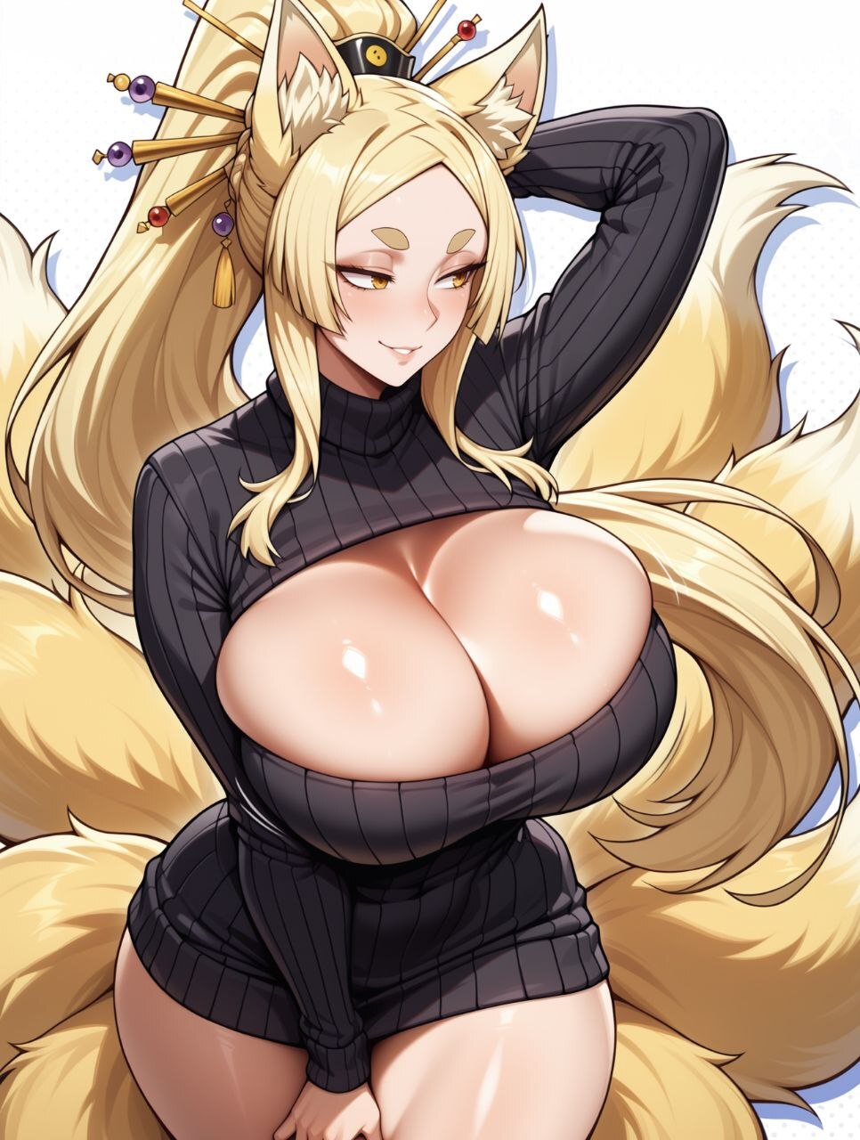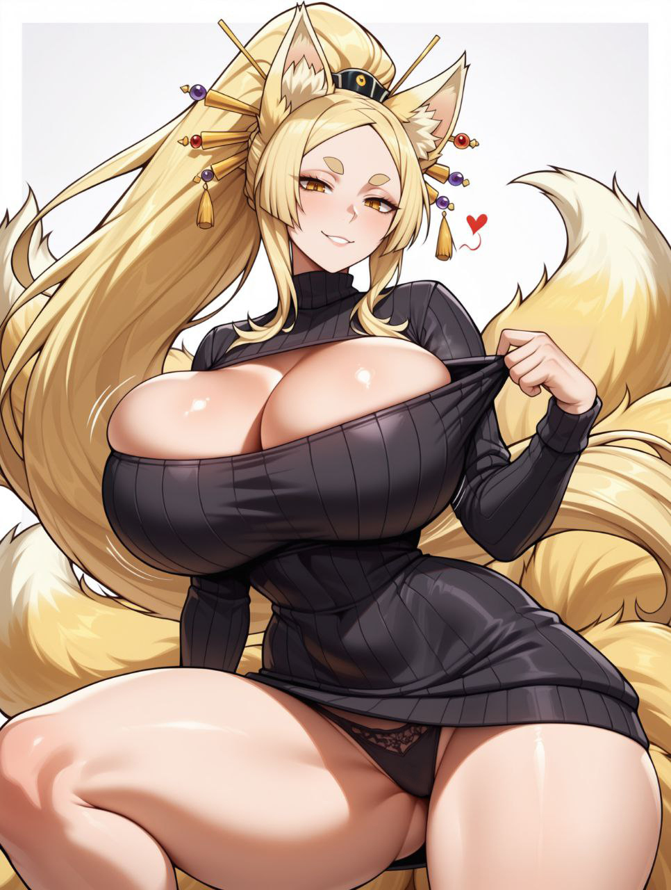 Последней же каплей для моей выдержки стала просто безумная выходка. Ясака задрала правую ногу, поставила её на ближайший выступ, отчего свитер сильно задрался, и на моё обозрение оказались выставлены чёрные кружевные трусики местной главы.