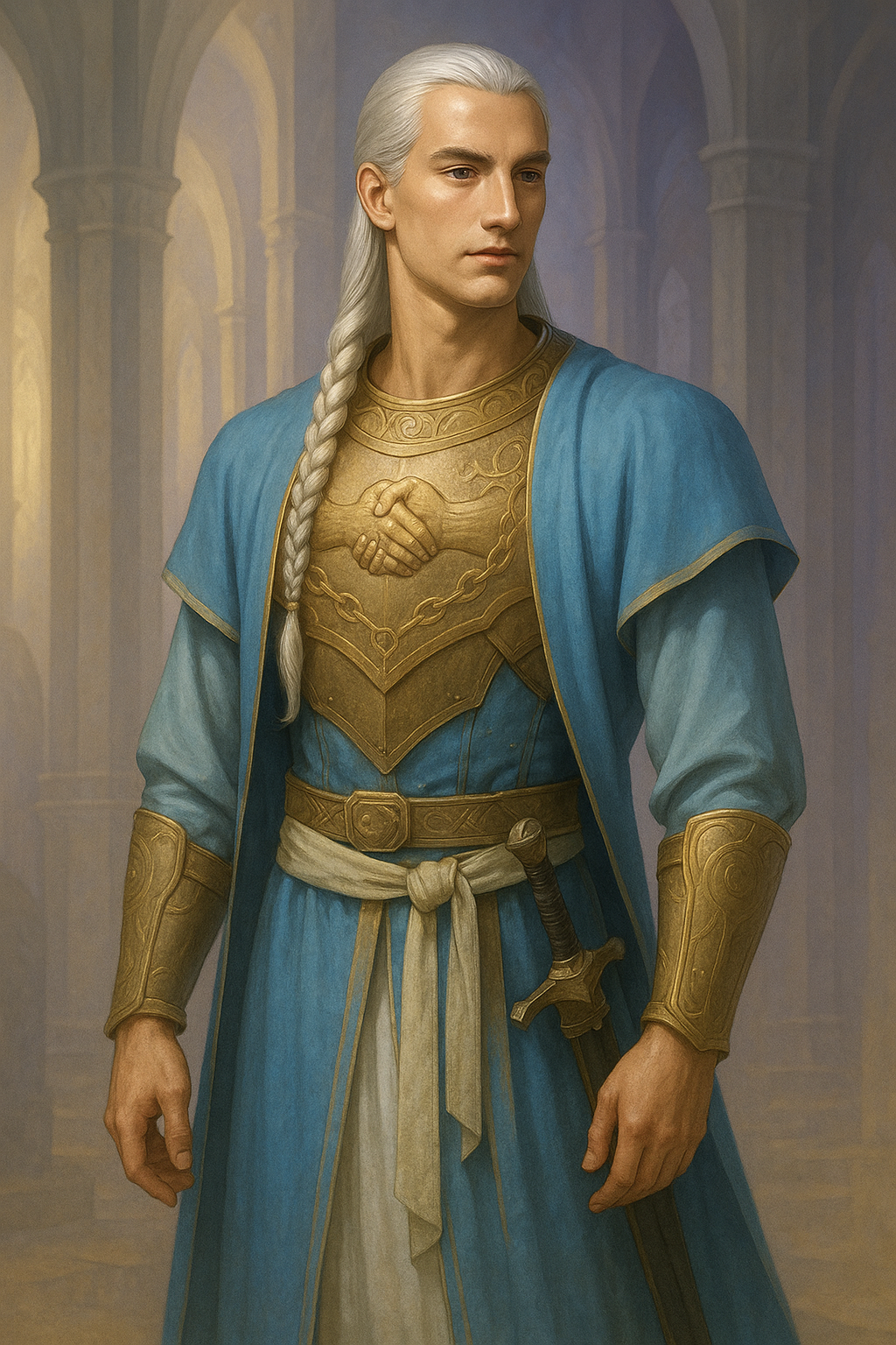 Он носил небесно-голубую одежду свободного кроя, простую, но качественную, без украшений. От него исходило ощущение отстранённости, даже когда он находился среди других. Будто его разум был постоянно где-то ещё, занят чем-то недоступным окружающим.