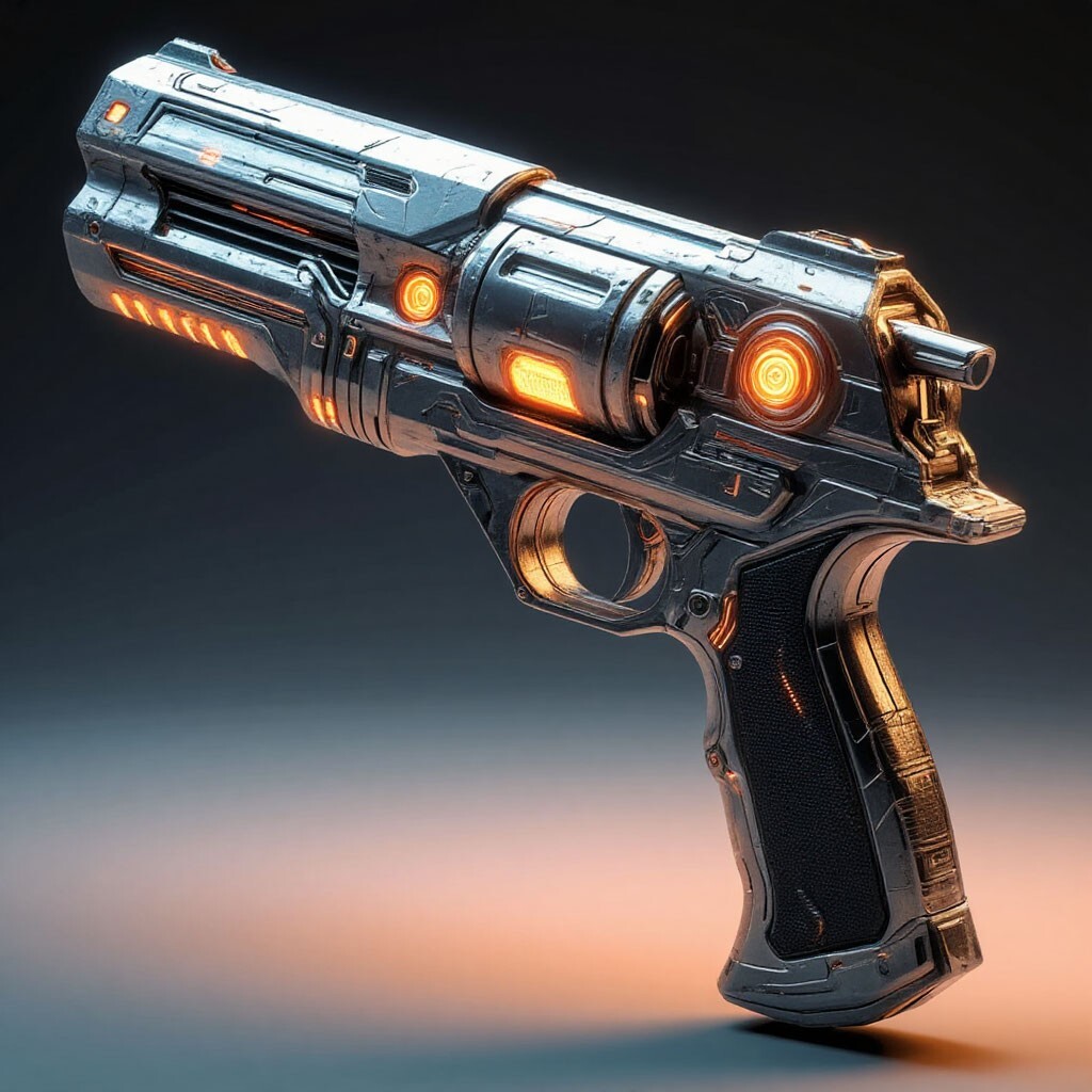 Однако, начать я решил не с этого, а с взятого за ивент с Кэрол перка. Сосредоточившись, вызвал Пистолет Света. В золотом сиянии, в моей правой руке сформировался футуристичного вида револьвер со стального цвета корпусом, чёрными вставками на рукояти и светящимися Светом элементами. Револьвер удобно лежал в моей руке, словно бы его рукоять создавалась именно под мою руку. Крутанув пальцем барабан со светящимся на нём Светом прямоугольниками, прицеливаюсь в скалу. Не долго думая, дёргаю спусковой крючок. Прозвучал приглушённый звук, так похожий на выстрелы бластеров из «Звёздных Войны». Из дула револьвера вырвался сгусток Света, который вонзился в скалу, оставив после себя слегка дымящуюся дыру. Никакой отдачи.