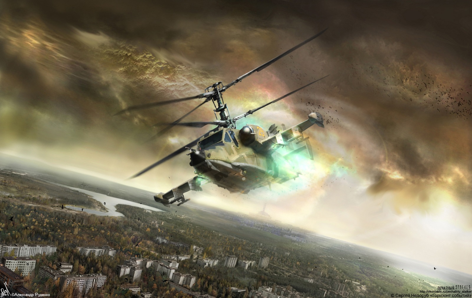 И вот, дав знатный круг по Ростку, огромному кладбищу техники и Темной Долине, мы вновь возвращаемся на Свалку, чтобы направиться в сторону Кордона. Но… даже не долетая до железнодорожного моста, вертолет разворачивается на восток. Опять разведка местности? Открывается дверь из кабины пилота, и в моем отсеке появляется капитан.