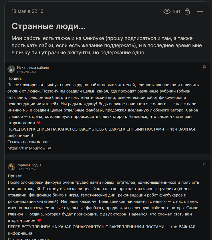 Так вот, сегодня опять ТОЧНО ТАКОЕ ЖЕ сообщение, от другого аккаунта, и это при том, что прошлые сообщения были удалены…