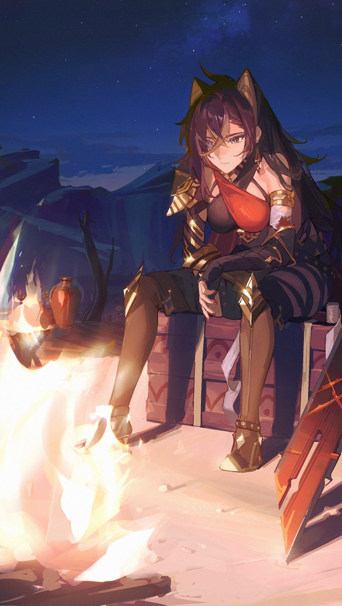 — Ох, были дела… — она поморщилась, но продолжила, её голос набирал силу. — Однажды в руинах наткнулась на стаю песчаных гиен — думала, конец. Еле вырвалась, старый меч сломала, а рюкзак потеряла, ползла по песку, пока не нашла укрытие за камнем. А ещё караван от бандитов отбивала — три дня без сна, спала на ходу, ела сухари, которые крошились в руках. Но самое страшное — когда заказчик пропал, а плата осталась в его сундуке. Пришлось штурмовать его дом в Сумеру, влезла через окно, а там тигры! Огромные, с оскаленными зубами, чуть ногу не отгрызли, но мору забрала — три мешка монет! Большинство наёмников грезят славой и богатством, лезут в самые жуткие задания. Кому-то везёт — становятся легендами, а другие в песках гниют. Я проще хочу — чтобы близкие в безопасности жили. И мору, конечно, люблю, ха-ха! Помню, как-то раз заработала целую гору, а потом потратила всё на пир для отряда — ели до утра, пели песни, пока горло не сорвалось!..
