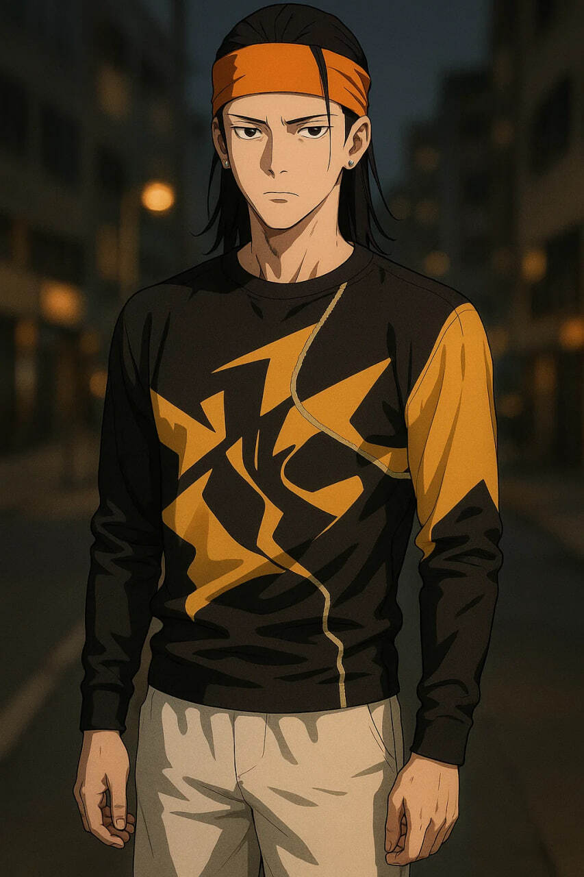 Внутри лежала заранее купленная, но ни разу не надетая одежда. Спортивная, немного вызывающая, даже кричащая по своему стилю — совершенно не та, к которой привык и которую предпочитал сам Шикамару. Вместо его любимых, тёмных, немарких тренировочных штанов — какие-то светлые, почти белые, чуть мешковатые шорты. Вместо обычной, однотонной футболки — яркий лонгслив, контрастный, с какими-то декоративными швами и асимметричными вставками. На лоб — широкая, ядовито-оранжевая повязка от какого-то «Бустера», которую одолжили у сестры. От неё же он позаимствовал и пару блестящих клипс-прищепок для ушей и несколько незаметных невидимок для волос. Сами по себе эти дешёвые серьги не играли никакой особой роли, но они помогали немного сместить визуальные акценты лица, сделать его менее узнаваемым.