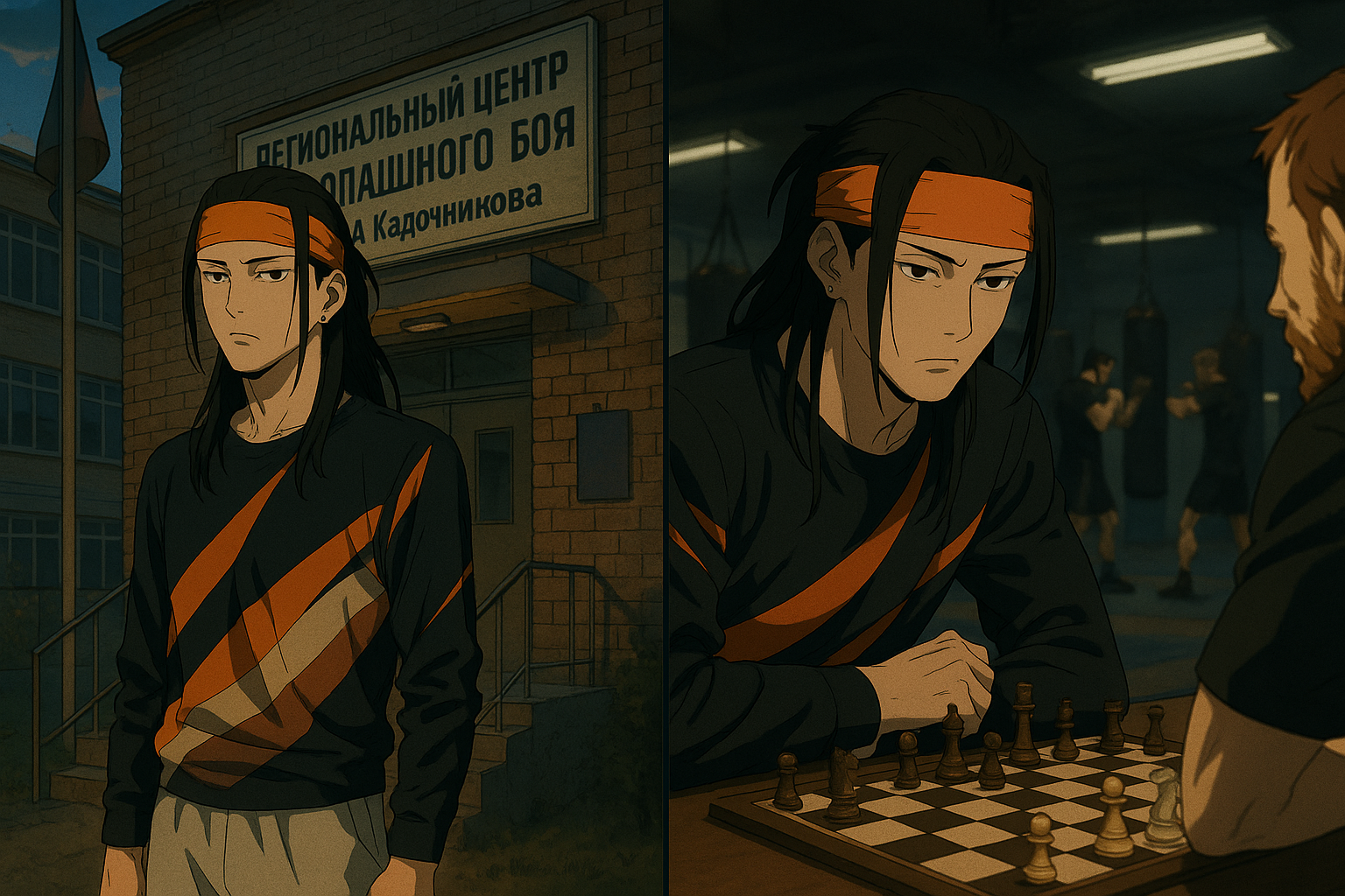 — А ты ещё кто такой? — строго, почти по-армейски, спросил он, нахмурившись. — Ты с какой группы, боец? Почему на тренировку опоздал? И это… — он выразительно кивнул в сторону его лба. — Это что ещё за внешний вид такой, я тебя спрашиваю? Серьги в ушах, волосы распущенные, как у девчонки. Да тебя же за эти твои патлы в первом же нормальном бою схватят — и тут же вытащат с ринга, как щенка. Немедленно завяжи их в хвост или, ещё лучше, — состриги вообще к чёртовой матери, если хочешь здесь заниматься.