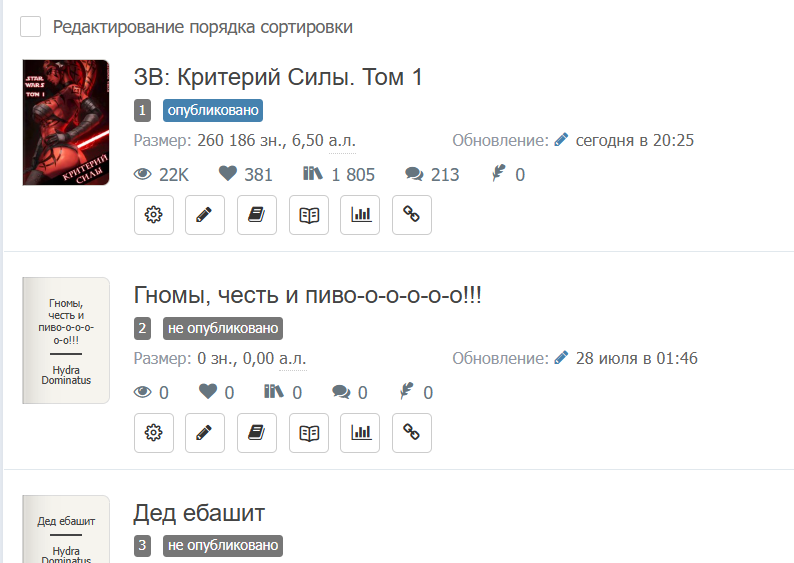 Пока по нулям пишет, потому что учитываются только опубликованные знаки. Но фанфик по гномам как-то так называться и будет. С обложкой только всё сложно, в инете нужных картинок нет, наверное придётся художника просить рисовать, ведь нейросетка тоже вряд ли справится.