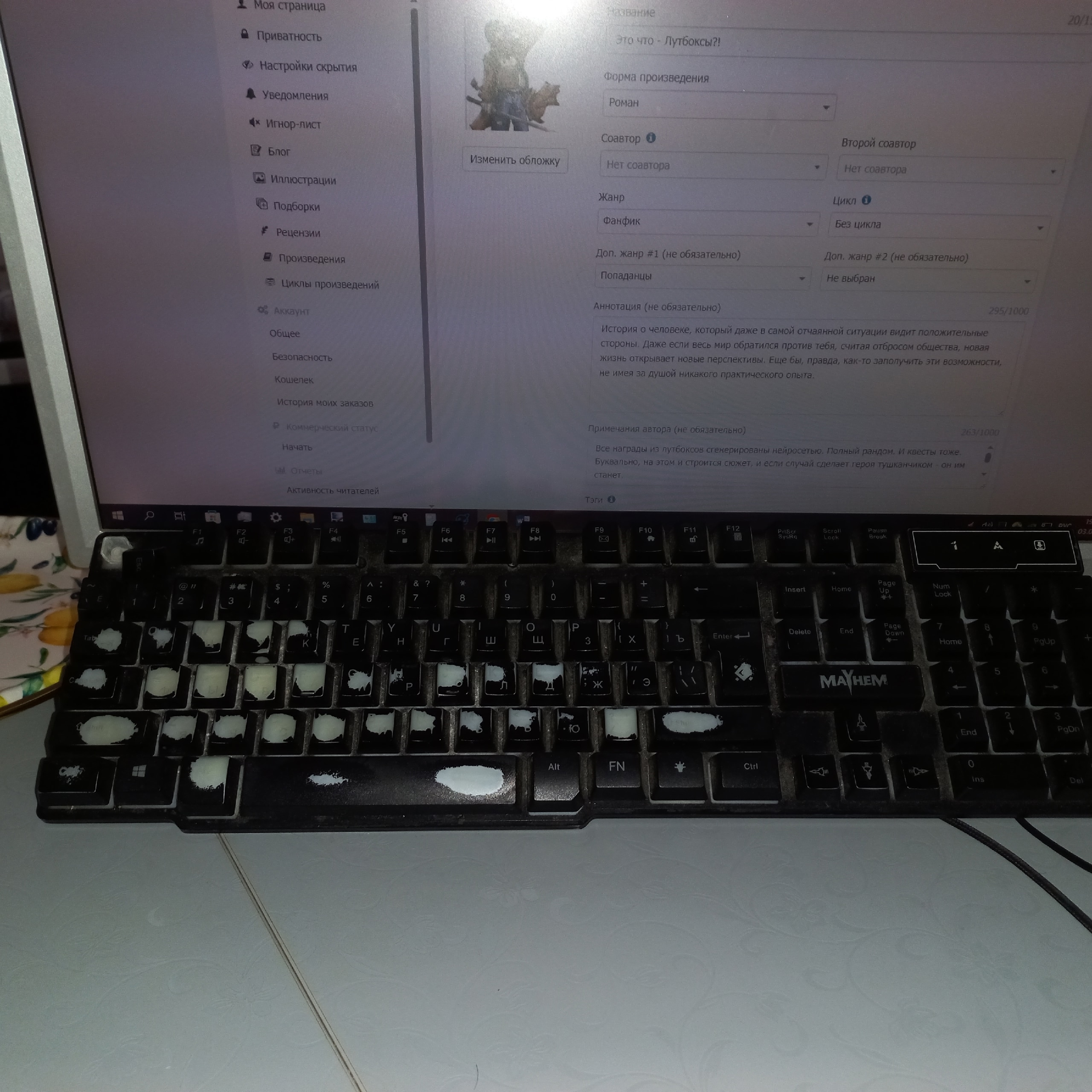 Клавиатура — инструмент графомана, как можно увидеть, моя уже не вывозит. Я пишу, как и многие остальные — без оглядки. И заметил, что многие клавиши начинают залипать — и хуй знает, что еще. Даже буквы стерлись. К счастью — последнее ерунда, но залипание очень неприятное.