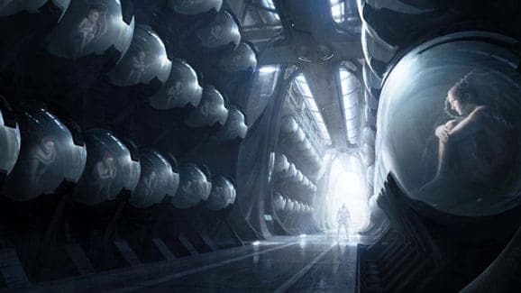 — Жаль. — Сказал я, внимательно оглядываясь по сторонам. В этот момент мы прошли сквозь огромный колодец, сверху до низу заполненный бесконечными белыми капсулами, сквозь которые с трудом были заметны гуманоидные фигуры.