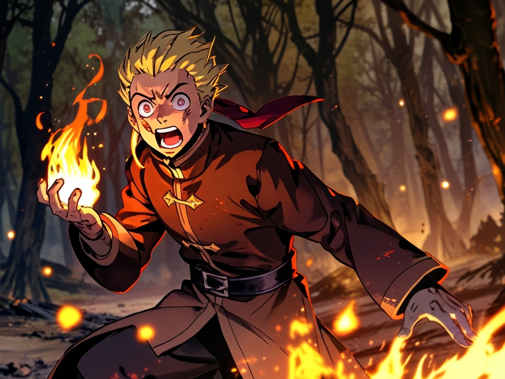 Зельевар на огромной скорости бежал к противнику. В следующий миг огневик атаковал его стеной огня шириной пятьдесят метров и семиметровой высоты.