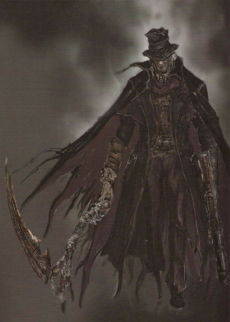 Прозвенел колокольчик. Дверь открылась и ко мне в паб зашёл охотник собственной персоной, о чём кричало всё, начиная от гротескного вида клинка, чем-то отдалённо похожего на нечто среднее между мечом и косой, не говоря уже про изрядно поношенное пальто с оборванными краями и, конечно же, стильный цилиндр, едва не заставивший меня уважительно присвистнуть.