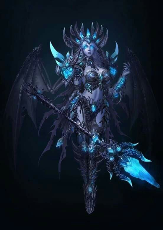 Лицо Синдрагосы походило на маску, выточенную во льду, прекрасную, но холодную. Кожа ее была бледной, почти прозрачной. Волосы белые, как снег, и такие же искристые, украшала массивная корона. Сзади из нее отходило шесть толстых рогов, а спереди — пять ледяных кристаллов. Посереди этой конструкции находили уже два рога, принадлежащих хозяйке. Таких же прямых. Шею целиком закрывало украшение, состоящее из чешуи самой драконицы и синих с белыми драгоценных камней. Мощные, массивные наплечники представляли из себя драконьи головы с раскрытыми пастями, из которых шел морозный туман. Прямо на них росли те же кристаллы, что и в короне. Ниже крупную грудь прикрывал только металлический броне-лифчик с меховой оторочкой. Живот оставался открыт. Трусики украшали множество витых рогов и один драконий череп с инкрустированным в него матово-голубым, овальным, полированным камнем. Ниже колена шли тонкие сапожки, из которых торчали шипы и рога, во множестве перемежавшиеся с драгоценными камнями. Бедра, как и полагалось, оставались на всеобщее обозрение.