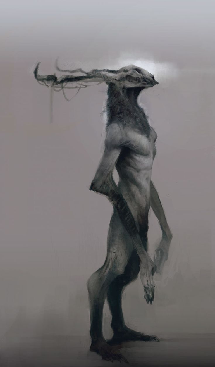 Худощавое существо с серой шкурой, поднялось на задние лапы, выпрямившись, выше человеческого роста, и взглянуло на меня тёмными провалами, в которых не было видно глаз. Из-за костяного нароста его голова больше походила на обнаженный череп, увенчанный изогнутыми рогами, как у оленя.